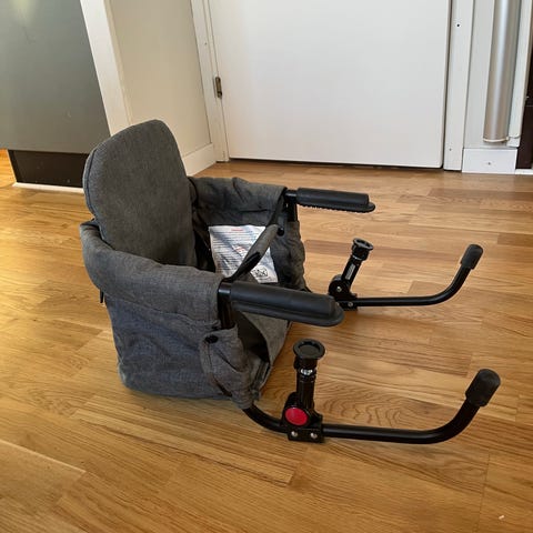 Jollyroom barnstol i beige färg. Stolen är utformad för barn och har en mjuk och bekväm sittdyna med säkerhetssele. Passar för användning hemma för att ge en trygg och bekväm sittplats för barnet.
