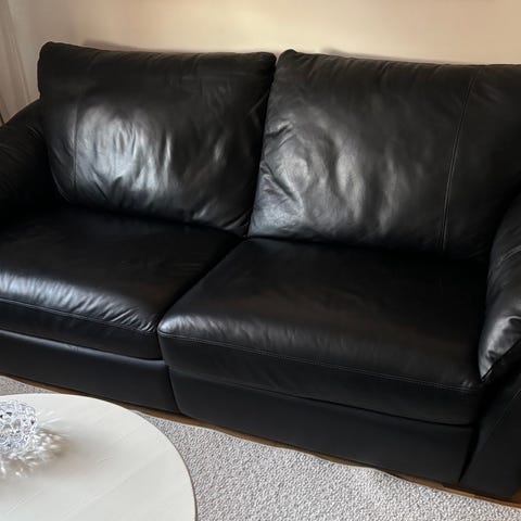 Se bilderna för mått och hur soffan ser ut. Färg oxblod. 4000kr