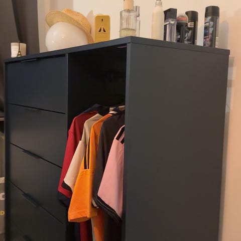 Byrå i massiv trä med tre lådor och dekorativa, vintage med metallhandtag. Möbeln har svarvade ben och en klassisk design. Passar för förvaring i olika rum.