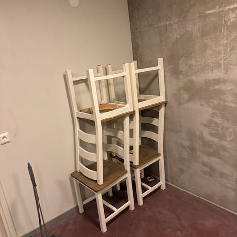 4 vita stolar i trä (Obs! Endast stolar säljes).