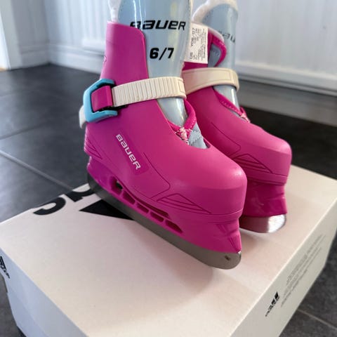 Bauer 10/11 skridskor för barn i storlek 28-29. Skridskorna har justerbara spännen för bra passform och stöd.