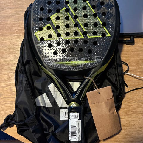 Jag har spelat med det i cirka 45 minuter, är i 10/10 skick. Märkt med en vikt på 356 gram. Vikter, verktyg och tygpåse från Adidas ingår.