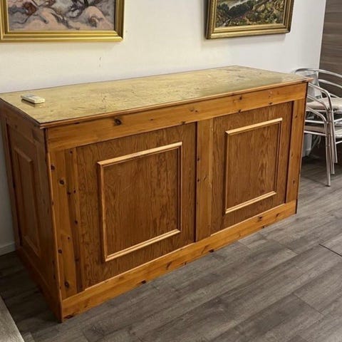 Minibar i trä med svart finish och belysning. Skåpet har flera hyllplan av både trä och glas för förvaring av glas och dylikt. Skicket är mycket bra, minibaren är varsamt använd. Pris kan diskuteras!