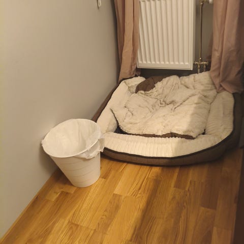 En mjuk och mysig kattbädd i beigt. Den har aldrig riktigt kommit till användning här hemma. Diameter ca 55cm.