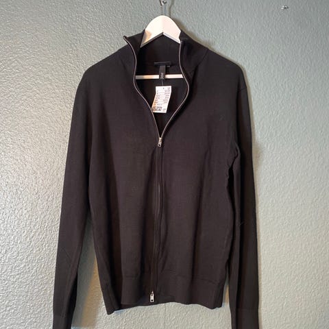 Säljer en beige stickad kofta från 157 i storlek M. Koftan har en hög krage och hel dragkedja framtill. Den är ribbstickad och har långa ärmar, perfekt för lager på lager under kyliga dagar.