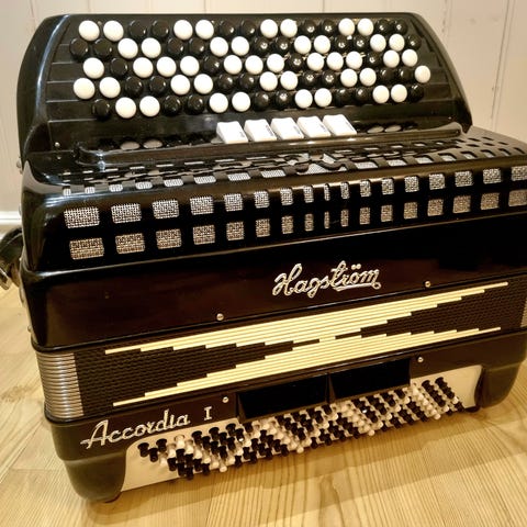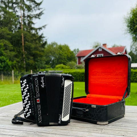 4-körigt rakstämt Bugari cassotto men med en extra 8-fotsstämma utanför cassotto lätt färgat några cent att kombinera med på ett antal register. Ett fantastiskt instrument med många möjligheter. Säljes med tillhörande väska.