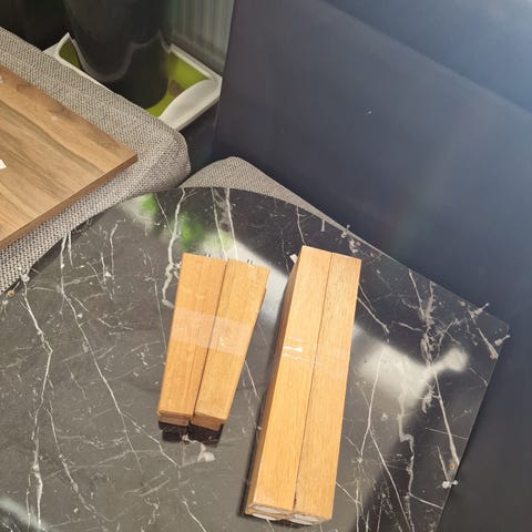 Helt ny bänkskiva i laminat. Blev över när jag bytte min. 1960x900x30mm går att kapa till vilken storlek man behöver. Kantband går att köpa på Bauhaus (där skivan är köpt)