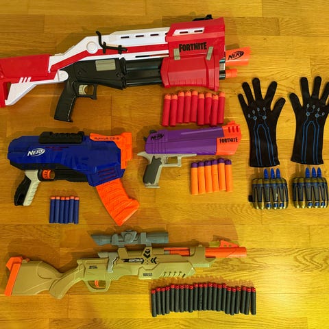 Nerf barnleksaker bestående av olika modeller av skjutvapen i plast med tillhörande skumprojektiler. Leksakerna är avsedda för barn och används för lek och träning av precision och motorik.
