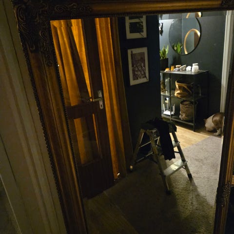 Metallfästen i spegeln