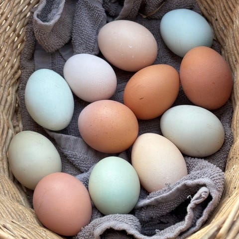 Kycklingar kläckta 11/1 ur bruna ägg från brun Lohmann som går med en tupp av rasen Cream Legbar och en Silverudds blå. Hönor från dessa kommer troligen lägga bra med ägg i olika gröna nyanser och komma igång att värpa till början av sommaren.