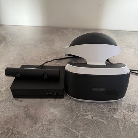Säljer PSVR1 , använt ett fåtal gånger. Sidofälten saknas – sonen tog bort dem för extra komfort, vilket jag förstått flera barn gör - så dom saknas. Det påverkar inte spelet, bara att lite ljus från sidan kan synas. Dessa Vr- glasögon kan användas på PS5 om du köper en adapter.