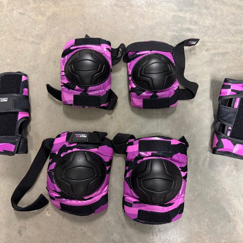 Två kompletta set skydd till skateboard plus extra handledsskydd och två par extra knäskydd.