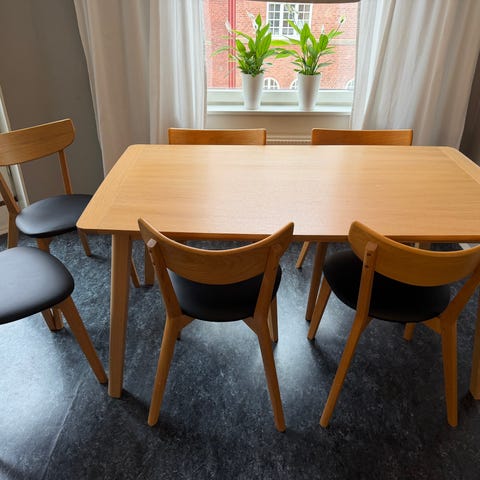 Kanonfina! En del märken efter användning. Nypris stolar ca 1300:-/st, bord 3000:-.