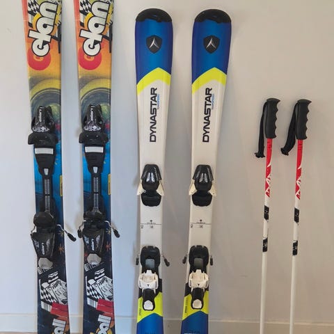 Slalomskidor 100 120 och 125 cm + pjäxor 210-215 + sele!