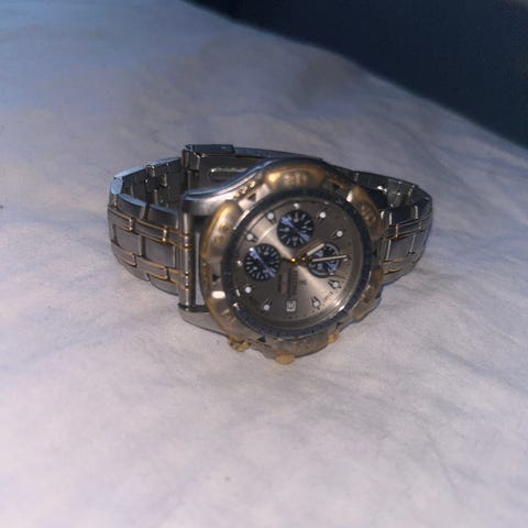 Övrigt: Boetten och läderbandet är i fint begagnat skick med normalt slitage. Säljes i befintligt skick, perfekt för dig som vill ha en snygg märkesklocka till ett fyndpris och inte har något emot att lämna in den för ett batteribyte!