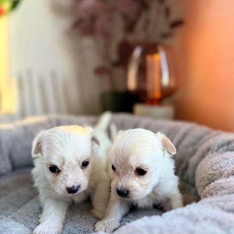 Mamman är blandning mellan Malteser Chihuahua och Shi zhu.