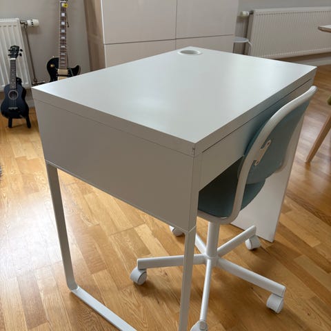 Säljer ett väldigt fint skrivbord från Ikea, samt en skrivbordsstol för barn, även den från Ikea.