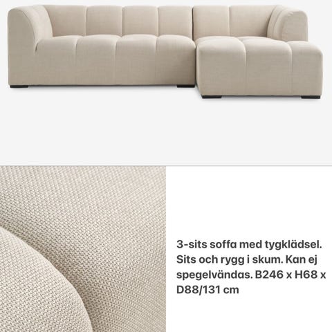 En beige/natur Scandinavian Touch Felix soffa från Hoven med 2 flyttbara nackkuddar och tidningsställ i ek. Avtagbar och tvättbar klädsel. Nypris år 2021: 25 300 kr. Kvitto finns. Bild 3 visar måtten på soffan (denna soffa har armstöd wave).