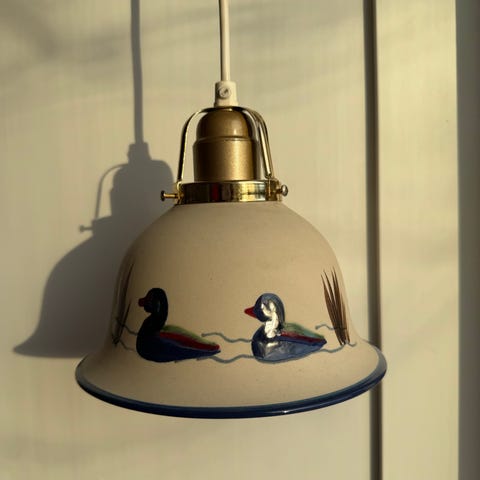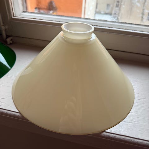 Fin lampa i grön plåt som aldrig sattes upp, dvs helt ny. Stor, rund glödlampa ingår.