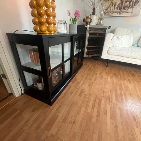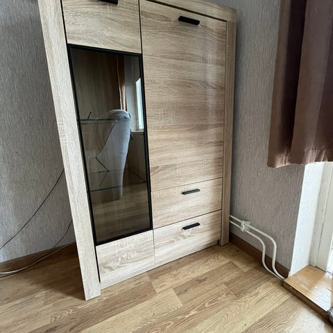 Säljer ett mycket elegant vitrinskåp som är helt och fint.