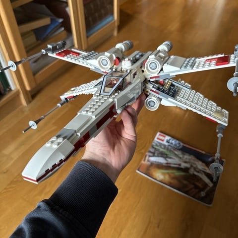 LEGO Star Wars TIE Fighter byggsats med minifigurer. Setet inkluderar detaljerad modell av TIE Fighter från Star Wars-temat samt flera minifigurer.