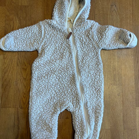 3. Mini Market – Overall, stl 62 (2–4 mån). Beige fleece med hjärtan. 100 kr