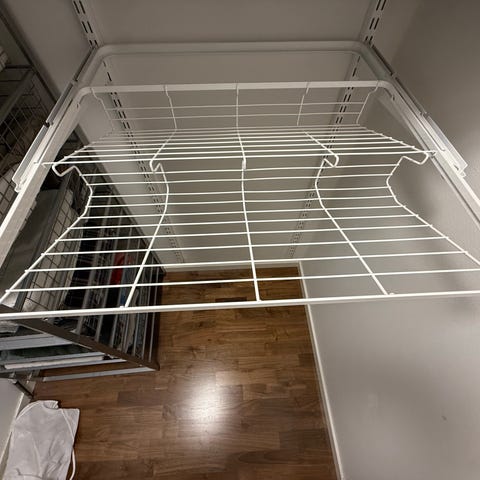 Elfa lutande skohylla och hängare