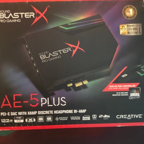 Creative Sound Blaster Audigy 2 ZS ljudkort med flera ljudutgångar och ingångar. Kortet är avsett för installation i dator och används för att förbättra ljudkvaliteten vid uppspelning och inspelning. Den har legat och slängt i några år, jag har inget sätt att kontrollera det, jag tror att den borde fungera utan problem.