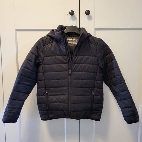 Marinblå lättviktsjacka i mycket fint skick, strl 134/140. Finns i ett rök- och djurfritt hem.