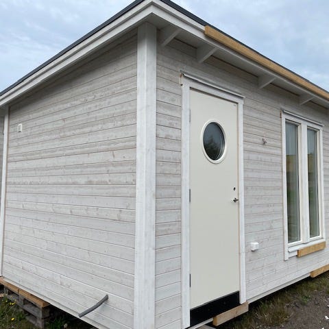 En friggebod byggd med patenterat väggsystem.