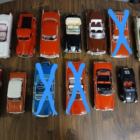 Bilarna har alltid stått i stängt vitrinskåp skyddat från solljus.