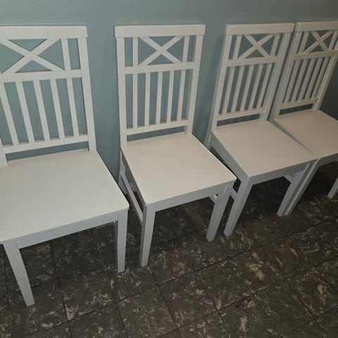 4 snygga vita Mio-stolar + gratis skötselspray (värde 199 kr)