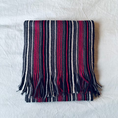 H&M halsduk sjal herr viskos vit blå röd med fransar