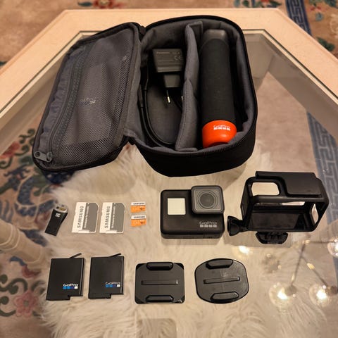 GoPro HERO3+ actionkamera med tillbehör inklusive extra batterier, laddare, fästen och vattentätt hölje ( glapp i stängningen men håller tät för säkerställ eller djupare dykning behöver ev bytas).