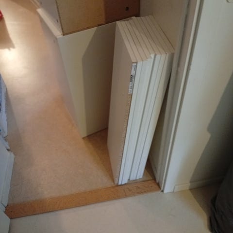 4 hyllplan med vita konsoler (50 cm breda och 45 djupa)