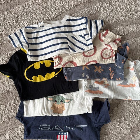 Klädpaket med T-shirt, långärmade tröjor, tjocka långärmade tröjor, jeans, kortärmad skjorta samt piké. Allt är från olika märken, h&m, Kappahl, Polarn & Pyret, Lindex mm. Allt är i bra skick utan hål.
