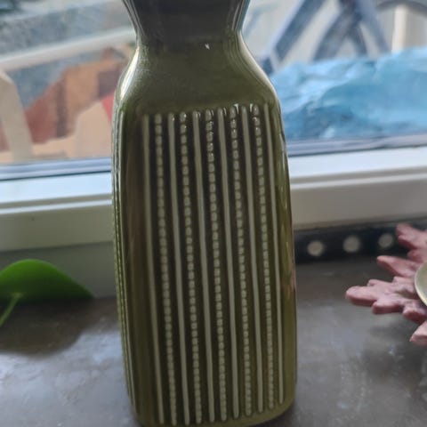 Dorre Dekorationsföremål i grå keramik med rund form. Vasens design inkluderar en vågformad detalj och en matt yta med små prickar. Passar för inredning och dekoration.