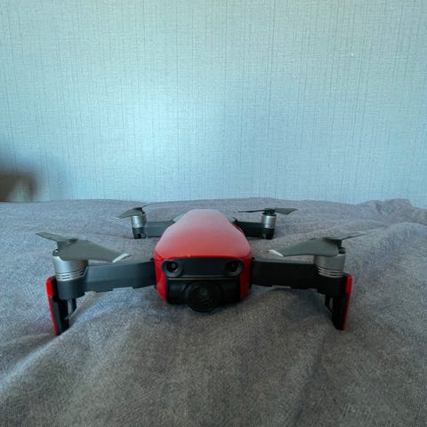 DJI Mavic Mini drönare i vit färg. Produkten inkluderar drönare, fjärrkontroll, batterier 3 stycken och bärväska. Drönaren är kompakt och lätt, lämplig för fotografering och videoinspelning från luften.