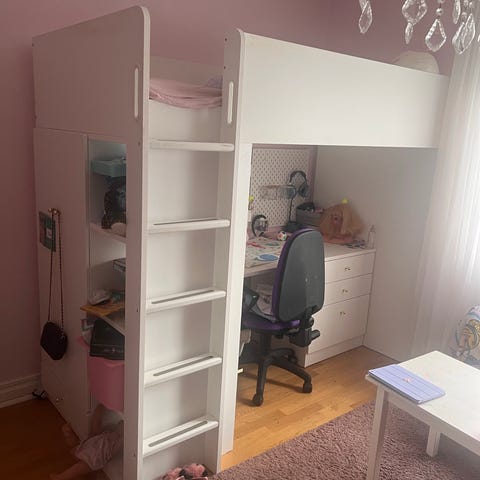 Loftsäng med skrivbord och garderob - fint skick!