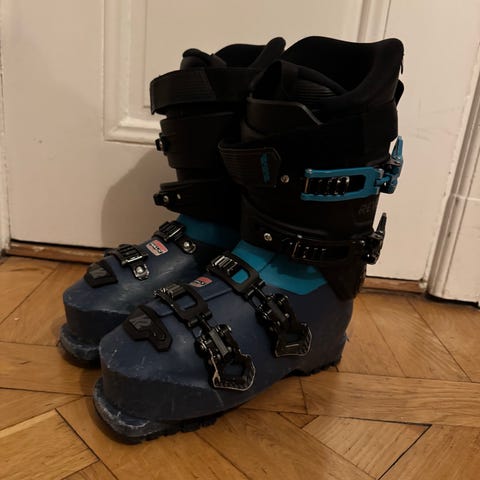 Slalompjäxor Salomon Team. Relativt mjuka, passar nybörjare. Strl 24/24.5 (285mm), vilket motsvarar 38/38,5 (EU).