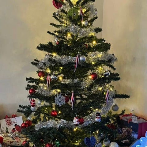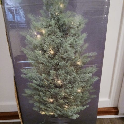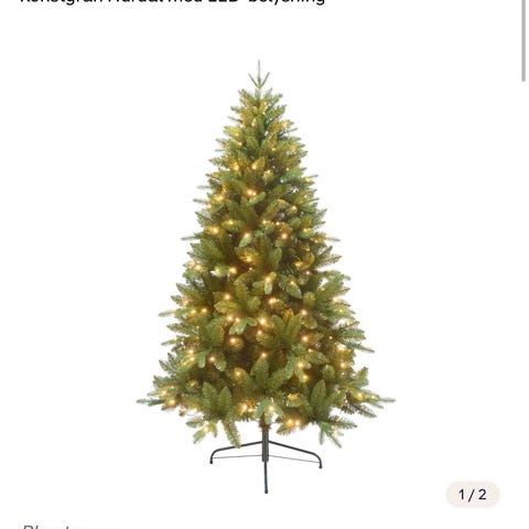Konstgran med inbyggd belysning i bra skick säljes. Pynt ingår ej.