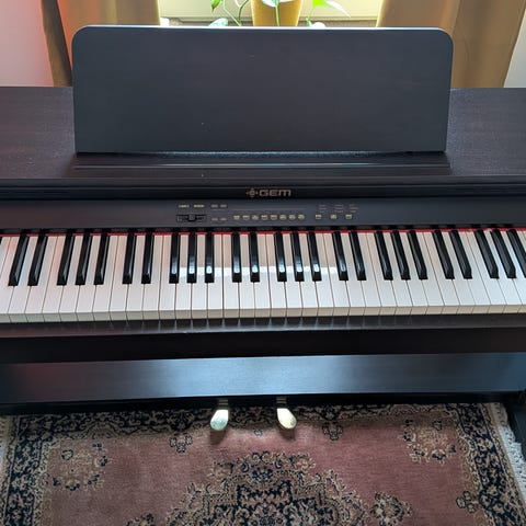 Yamaha Piaggero NP-12B digitalpiano i svart färg. Pianot levereras med ett K&M Keyboardstativ. Digitalpianot är kompakt och bärbart, lämpligt för både nybörjare och mer erfarna spelare.