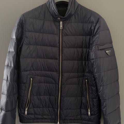 Prada vinterjacka för dam i storlek S. Jackan är svart och tillverkad i polyester. Den är utformad för att ge värme under kalla förhållanden och har en vadderad design med huva och flera fickor. Stilren och tidlös vinterjacka med Pradas ikoniska triangellogga. Varm dunfyllning, huva, midjejustering och rymliga fickor.