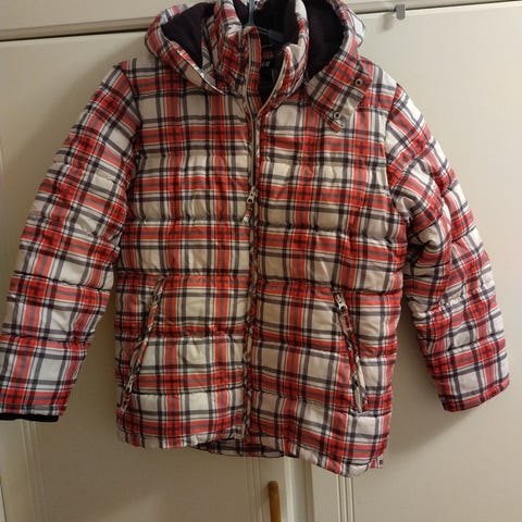Tommy Hilfiger barnjacka vinter i storlek 164 med flerfärgat rutmönster. Jackan är vadderad och har huva, lämplig för barn.