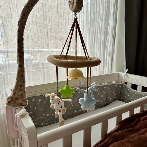 Jätte söt sängmobil med virkade traktorer från märket Smallstuff.