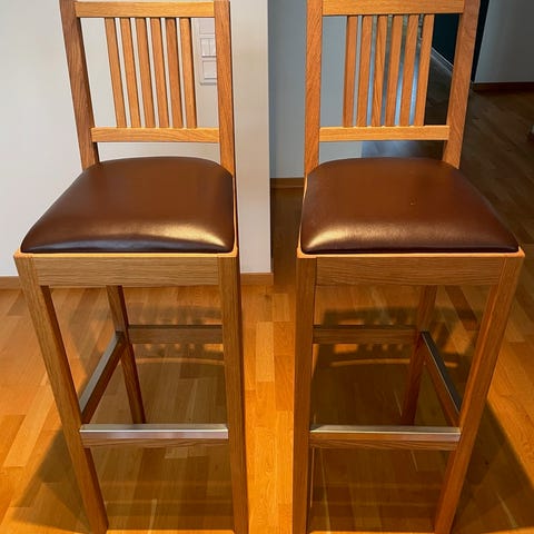 2 stycken barstolar med ben i ek från Mio i skinnimitation med extra klädsel.