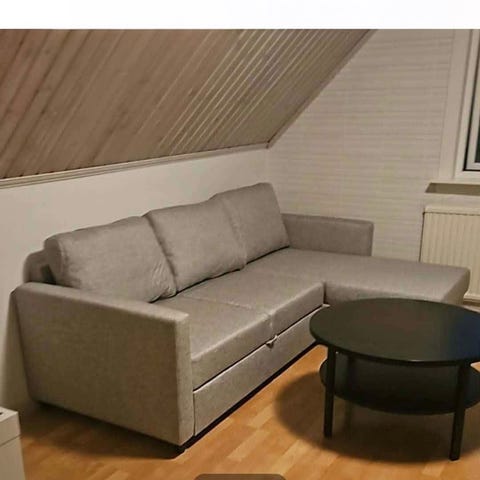 Bra att veta: Denna soffa har fast klädsel på stommen.