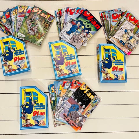 Samling av 91:an serietidningar. Innehåller olika nummer och utgåvor av den svenska serien 91:an.