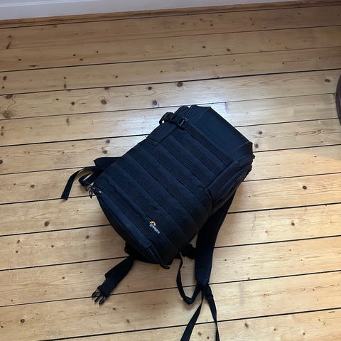 Lowepro ProTactic ryggsäck i svart färg. Ryggsäcken är utformad för att ge skydd och förvaring av utrustning med flera fack och robust design.