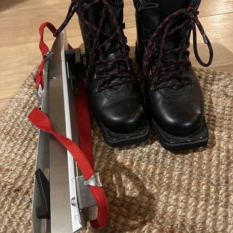 Långfärdsskridskor med pjäxor i st 37, Everest. Pjäxorna kan användas som vandringskängor under andra säsonger.